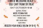 Golf Cart Trunk or Treat 18 Oct 2025 Register today for the Town of Melbourne Beach's Golf Cart Trunk or Treat! Prizes for best decorated golf carts!Register by October 16th. Registration is limited to 15 golf carts & vehicles. Ryckman Park, 509 Ocean Avenue, Melbourne Beach, FL 32951 Tagged as: , Youth events